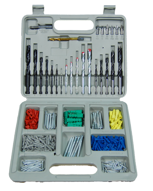 El juego viene completo con brocas de metal, brocas de albañilería, brocas de destornillador, pernos molly, anclajes de pared y ¡mucho más! Cada broca para cada trabajo imaginable, 310 piezas en total, ¡un valor de $50!